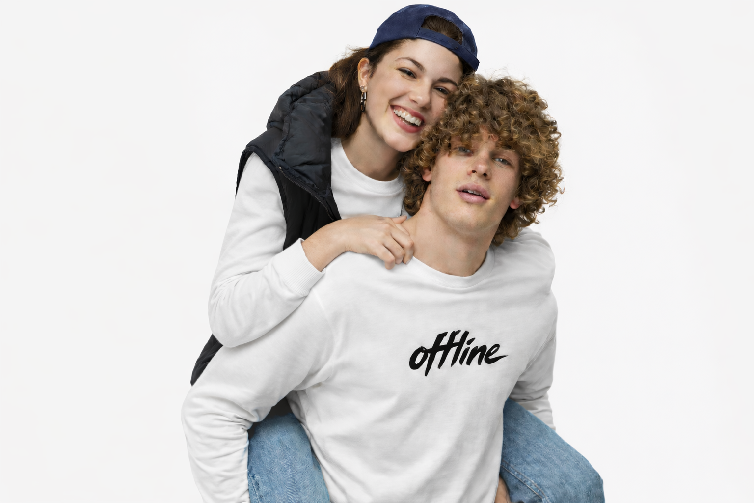 Biała Bluzka Koszulka z Długim Rękawem "OFFLINE" – Unisex z Haftem | BTL by AnnaPAP